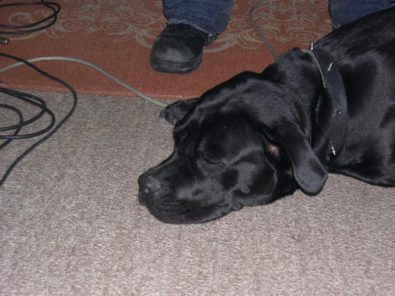 Tak dnes to tady připomínalo známý polský seriál. Byli jsme tu čtyři: já, on, ona, on a pes. Kapelka Anitokok přivezla materiál, s kterým se budu následující chvilky bavit. A nejen materiál, ale i spoustu dobrot a psa. Pejsek byl hodný, nikomu nic neukousl (ani ruku), Fredy dohrál nějakou tu basu ještě a já se pustil v noci do první míchačky. Pokecalo se trošku, mimo jiné jsem cizincům ukázal jaké máme ve Veličce ryby (Šárka je pohotový fotograf ka), dali kafé, cigáro, byla pohoda. Přemýšlím tak nad tím vzorečkem (když je to tedy tradice)...... ale jo, kousíček.