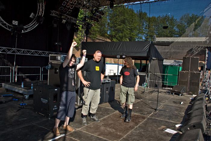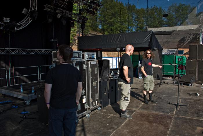 Jak jste si zajisté všimli, ti dopisující do komentářů si všimli na 100%, že jsem zde ve studiu v pátek nebyl. Mé místo zastoupil Wavroň (Martin Vavřík). Já ráno ve čtyři vyrazil směr Josefov, kde probíhal festival Brutal Assault. Zde jsem měl tu čest zvučit a fotit kapelu Forgotten Silence. Den to byl náročný. Vlastně i večer a noc. Několik fotografií z pátečního dne přináším dnes a v pondělí přibudou další. Zajisté si všimnete pojetí fotografií. V dnešní době prostě nikdo není zvědavý na fotografie vystupujících umělců. Takových fotek bude asi dvě miliardy od pondělka. Ale fotografie ze zákulisí, vyloženě ze zadu podia a fotografie metalových hvězd, které si jen tak bez ochranky chodily maskovány po areálu vojenské pevnosti, to jen tak někdo nevyfotí. Proto jsem se rozhodl jít tímto bulvárním směrem a ukázat Vám mnohem více než nějací ti foto-press passportoví V.I.P. fotografové fotící ve fotozóně neznámé metalové hvězdy, aby se těmito zjednohometrufotkama staly záhy slavnými.