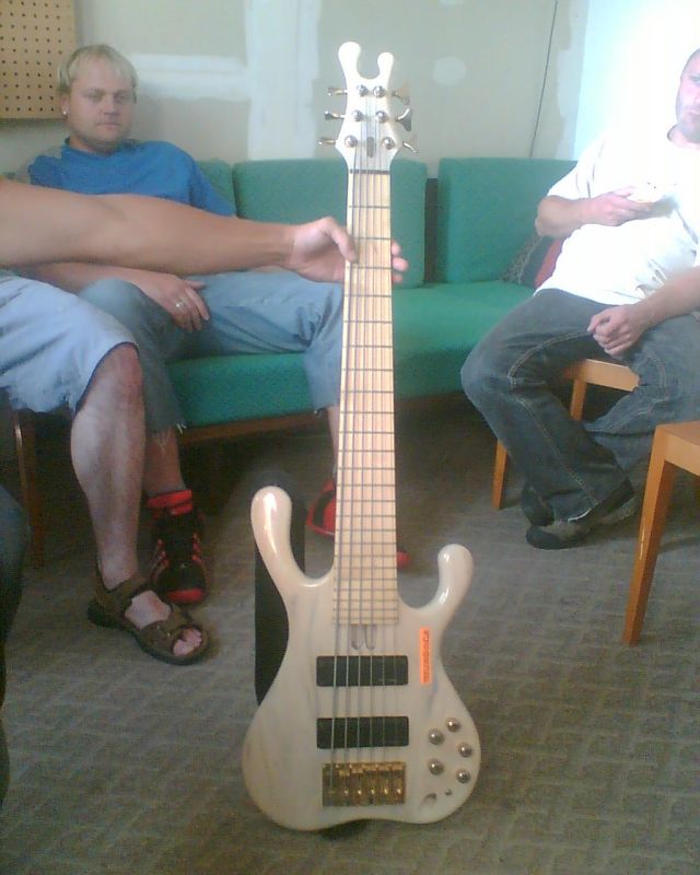 V neposlední řadě bylo další neznámou, opět pro mě, basa. 6-ti strunná od slovenského baskytaráře Lojza Krajíčka. Pěkně veliký nástroj. Díky své mohutnosti má hodně basový zvuk. Šest strun je šest strun. Mechanika a tělo je díky tomu pevné a masívní a od toho se odvíjí zvuk nástroje. Nakonec to ale nezní špatně, uvidíme u mixu.
