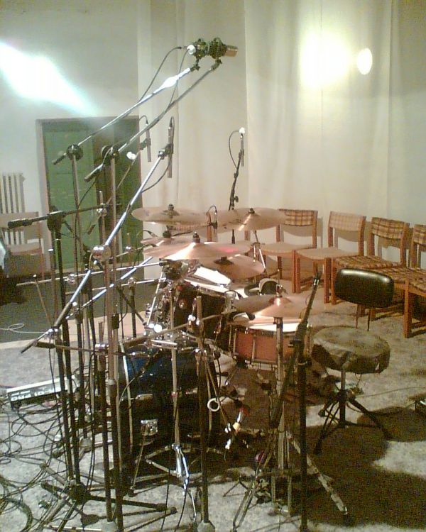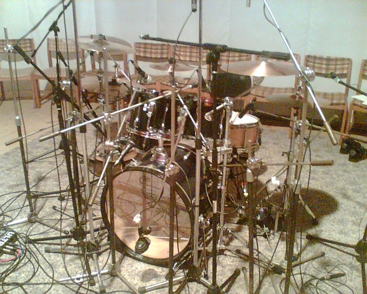 V pondělí to tedy všechno začalo. Přípravy, propojování, zapojování... prostě štelování se vším všudy. Bubeníci štelovali bubny, nebubeníci ládovali podklady, jen se z MIDI kabelů dýmilo. Jelikož jsme nějak nekontrolovali ty dva na sále, nekontrolovaně tedy opět nas.... napojili spousty mikrofonů okolo bicích. Raději jsem to přesně ani nepočítal, ale 19 mikrofonů mluví samo za sebe. K tomu až 26 mono stop podkladů... to máme...takových asi dost stop již v prvopočátku.
