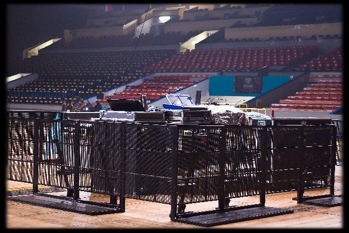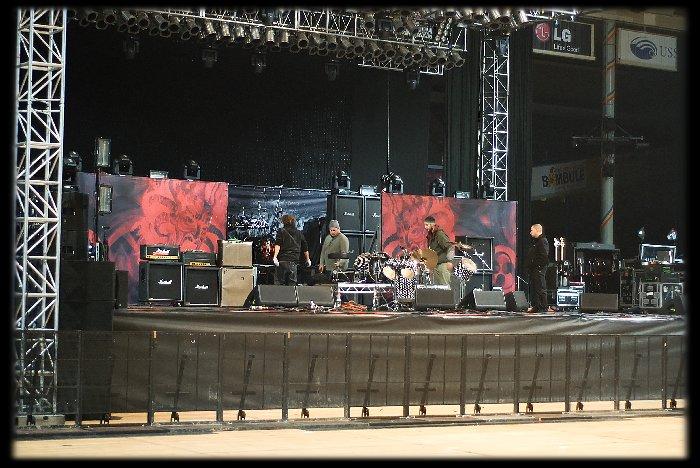 Ještě než se aparát stěhoval na pódium (stejč) měli jsme takové krátké posezení, tedy spíše postátí, se šéfem (?) pódiového zvuku. Ten nám vysvětlil (anglicky) že jsme sice vyhráli svých 15 minut slávy, ale to rozhodně neznamená, že před tím, či potom, totéž bude platit.V krátkosti nám vysvětlil, že nic není zadarmo a za vše je zapotřebí zaplatiti. Pokud chceš aby světla blikala - zaplať (20 euro), chceš se slyšet v odposlechu - zaplať (25 euro). FOH mix jsem obsluhoval já, takže Malignanti místo 25 euro zaplatili mě 40 euro (to se dá).Na to, že soutěž v podstatě vyhlásil management tour tohoto cirkusu byly podmínky vcelku překvapující (a nikým dopředu neinformující). O tom že v zákulisí (bekstejdži) nedostanete ani kapku vody, ani raději nemluvím, to je bohužel holá realita a nic se na tom asi nezmění.