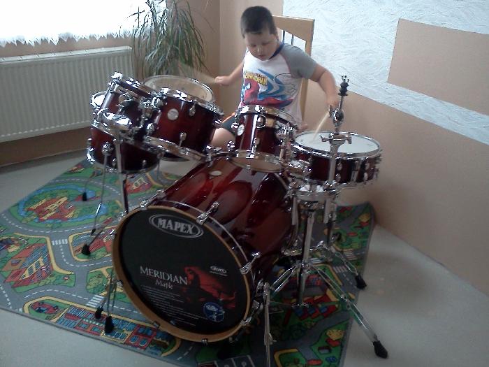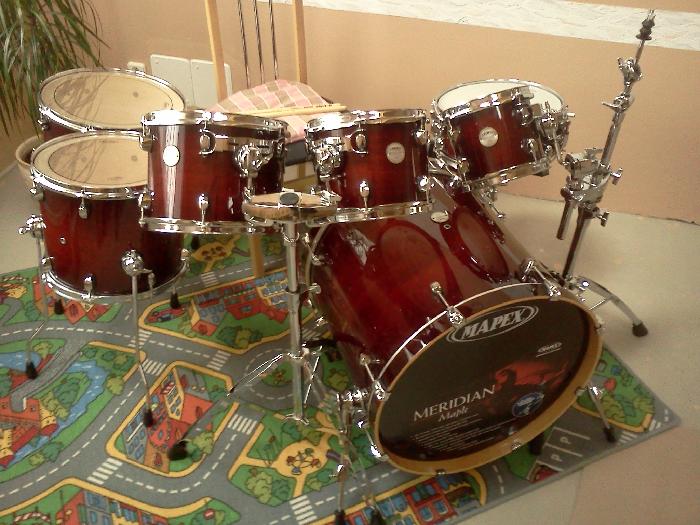 Jak popsat název dnešní aktuality? Jednoduše: ve spolupráci s firmou Mapex (jmenovitě Mr.Oto Krojzl) má nyní studio Šopa k dispozici erární bicí sadu Mapex Meridian Maple MP7287 v sestavě 8x7", 10x8", 12x9", 14x12", 16x14" tomy, 14x5,5" vajrbl, 22x20" šlapák. A nejdůležitější informace - sú červenohnědé!!!!!!