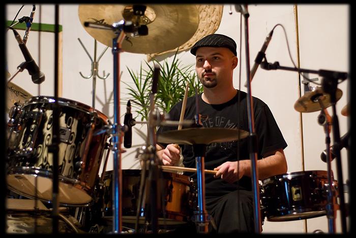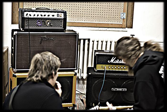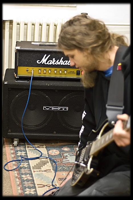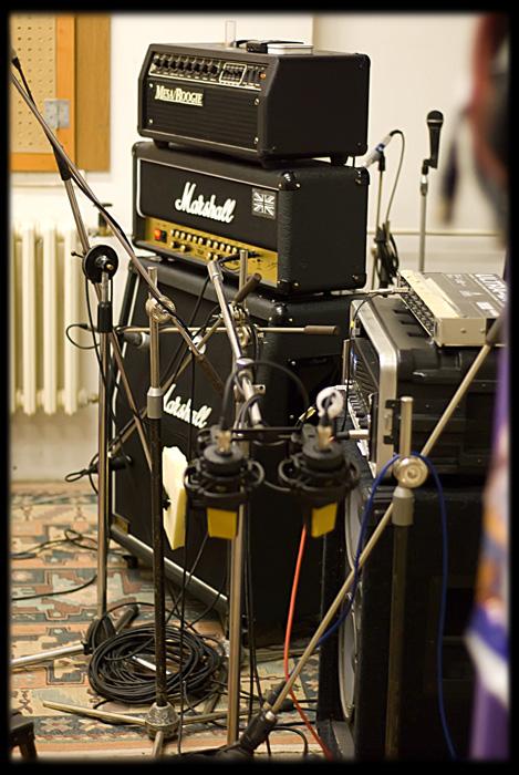 V pondělí se do Šopy nastěhovala LaMancha a ti jsou zde doposud. V tuto chvíli máme natočeny kompletně základy (bicí 100% +-0,1%, basa 99,9%, 99,9% kytar), housle do 3/4 skladeb. Zítra pokračujeme houslema a nastoupí na řadu zpěv. Trochu jsem opomenul jaksi fotografovat aktéra Luboše u nahrávání basy (Fender Jazz Bass!). Ale při dohrávání 0,1% materiálu ho určitě "blejsknu" (fotografie LM-).