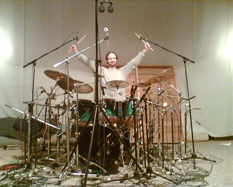 A tak zase točíme. Točíme v množném čísle je na místě. Jeden v režii a druhý za bubnama Yamaha Maple Custom. Vlasťa se tento týden za mix nedostane (a když jo tak dostane). Hudební sdružení Paladran dnes odstartovalo nahrávání CD. Použili jsme 23 mikrofonů !!!!!! Zatím record, teda rekord. Posílení KROWKAMA (vynikající polské karamely) a kuřivem FAJRANT (vynikající polské cigarety) jsme se vrhli do příprav. Hyeniku, díky za ně! :-)