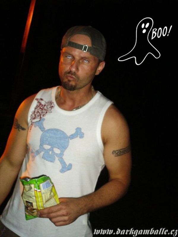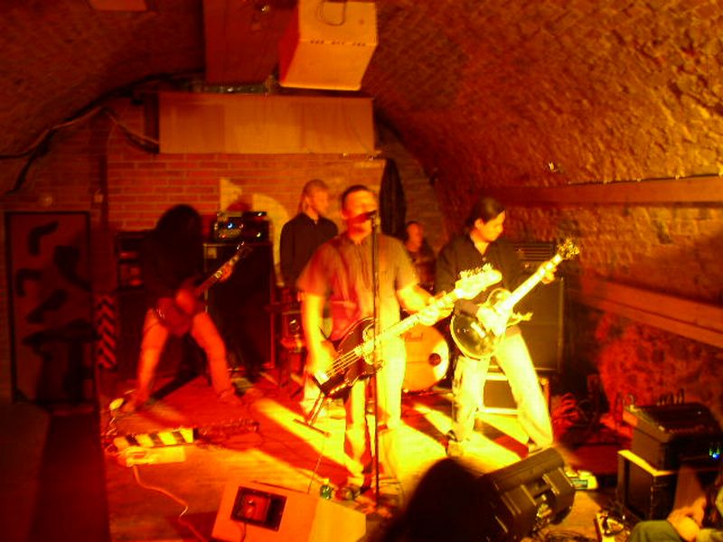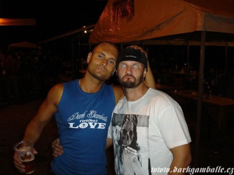 Mezi tím kapely pomalu přijížděly. Sad Harmony byla na místě již před našim přájezdem, pak se objevila kapela Dying Passion a na konec se přiřítil neuvěřitelnou rychlostí modrý VW Transportér. Ano, Dark Gamballe. Za modrou dodávkou dobíhal jeden nejmenovaný kytarista. Na mou otázku, proč jedou tak rychle mě bylo odpovězeno: Pegárovi nestíháme, ale ve Skalických uličkách se nám ho podařilo předjet. Hmmm, proč to? Proč se Pegár neveze v autě? No logiku to má. Ten večer Pegár zastupoval člena Dark Gamballe Spajsiho. A protože Pegárův "cajk" je opravdu velký a nechtěl se vzdát svého maxi pedalboardu, nezbývalo mu nic jiného, než běžet po vlastní ose. A ještě k tomu prý sportuje a drží dietu. Tak spojil příjemné s užitečným.