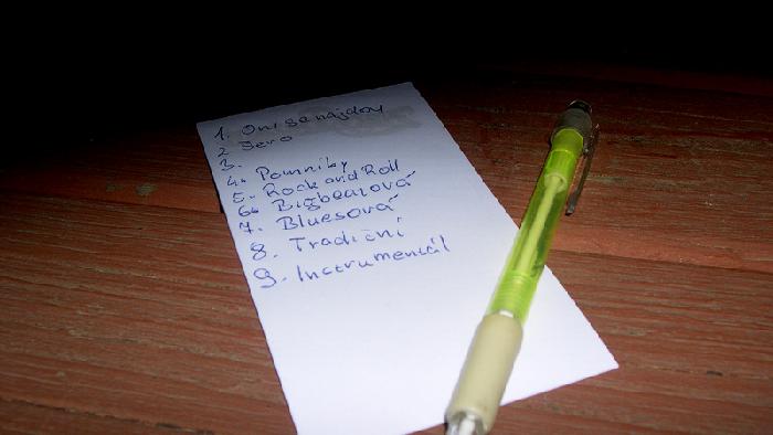 No a jedna nejmenovaná kapela měla již svoji třetí zkoušku. V prozatimní zkušebně si zatím vzpomněli na playlist. Zatím přislíbilo účast na projektu sedm bývalých členů (z deseti). Kdo to je a co to je za kapelu je vcelku jedno. Brzy se ale zřejmě v menu stránek ukáže další sekce v které se vše podstatné dovíte a která bude monitorovat aktuální dění. Zatím je to dobré. Ještě nehráli.