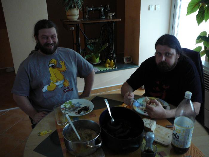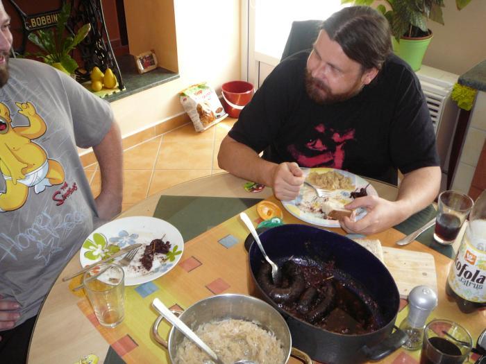 Ke správné produkci patří i správné stravování. Jako jídlo myslím. Tak podhalíme dveře do kuchyně, aby jste nebyli ošizeni o ten skvělý zážitek. Mńam. Bylo to vyňykajýcý! Samozřejmě zákuseček nesměl chybět (DIA trubička samo sebou, žeee?). U obědu jsme neprodukovali. Za to večer ano.