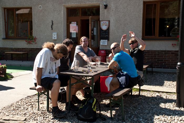 Vytvořila se dvě družstva: ženská skupina A vedená Sakimem a slabší skupina B, kde vládla anarchie a bezvládí. Skupina A jela směr Vápenky, kde měla za úkol držet slabší skupině B místo v restauraci. Skupina B se pokusila zdolat vrchol Bílých Karpat Velkou Javořinu. Trasa vedla z Lipova přes Velkou nad Veličkou, Filipovo údolí, Šibeniční vrch, Durdu, Holubyho chata, Vápenky a zase Lipov. Zde jsou podrobnosti z mapy. Více méně jsme zvolili tu nejnáročnější trasu, ale zvládli jsme ji ve zdraví.