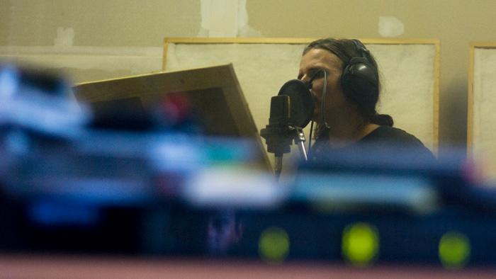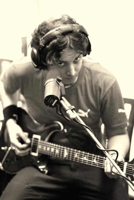 Středa. Bicí hotové. Basa natočená. Jedna strana kytary. Hotová. To je teprve středa. Pomalu točíme zpěv. A fotíme.