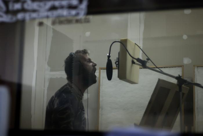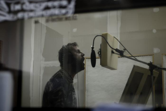 Není úniku již unikli, vše mají hotové, nahrané, smíchané. Taková rychlofka... to se snad ani nedělá toto. Basáka Pipina jsem ani fotograficky nezastihl v akci. Než jsem se nadál, měl to natočené a dokonce i sbalené. To bylo úterý. Ve středu zde pobyl velmi malou chvilku Rezlik, toho jsem pro změnu raději hned vyfotil dvakrát. Za tuto velmi malinkou chviličku stačil nazpívat všech 10 skladeb. Prozradím, že jedna skladba není zpívaná v našem americkém jazyce, ale je zpívána španělsky(!). Vlastně v našem americkém jazyce není zpívána žádná skladba. Ukázky se objeví v co nejbližším možném čase na profilu kapely, teda aspoň si tak myslím.