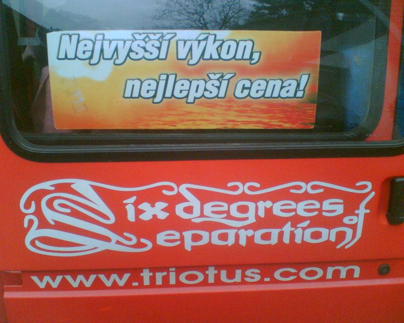 Sobota. Sobota byla perná od rána. Zavést děti k babičce a alou zpět do Vizovic. V sobotu jsem pomohl trochu s cimbálovkou Maldé Slovácko kapele Silent Stream Of Godless Elegy (zvukově podotýkám), zašli jsme zkontrolovat Rumtime pracoviště, zda-li se něco nezměnilo (tentokráte bez rumu). Nezměnilo. A hned odjezd do Dubňan, kde jsem večer zvučil zábavovou kapelu Charon. Přechod ze 160kW aparátu na 3kW je asi jako přestup z Formule1 do Trabantu. Ale zvládli jsme to nakonec. Jaksi.