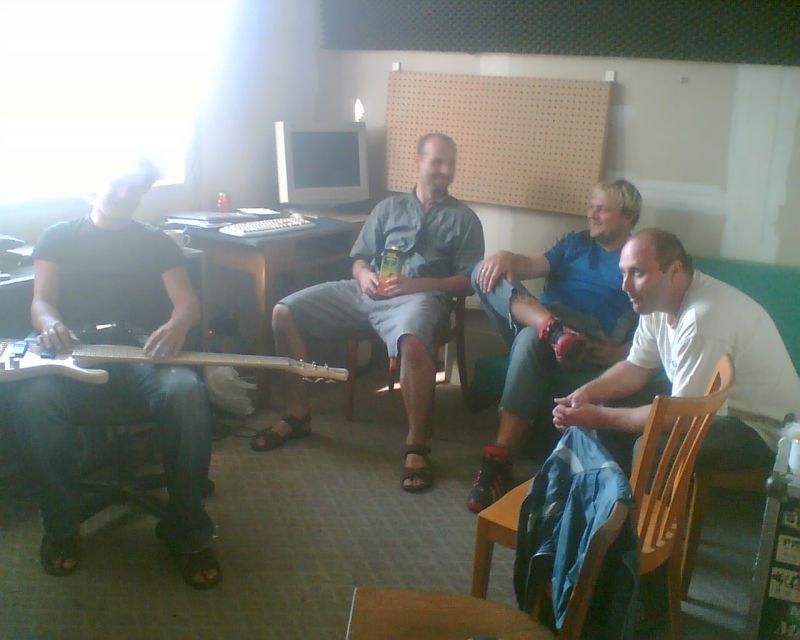 A to myslím vážně! Opravdu, v pondělí a úterý okupovala kapela Coll@pse studio Šopa. Nahráli zde kompletní základy pro své promo CD, které bude obsahovat 3 skladby. Bicí jsme točili na sále. Žel bohu jsem opět nestíhal fotit, tak obrázky bicích Mapex zde neuveřejním. Snad je vydoluji od kluků, myslím že nějaký foťák snad měli. V každém případě Mapexy laděné mr. Gothyšem, za nimi bubeník Coll@psů Standa = zvuk Mapexů naladěných Gothyšem do kterých buší Standa. No fakt nekecám. Věřte, že jsou to teda skutečně rány jak z děla, obrovského děla. Schválně si počkejte na příští víkend, kdy kapela přijede svůj materiál ještě obohatit zpěvem. A pak to celé smícháme a snad mě povolí i tu ukázečku pro Vás.